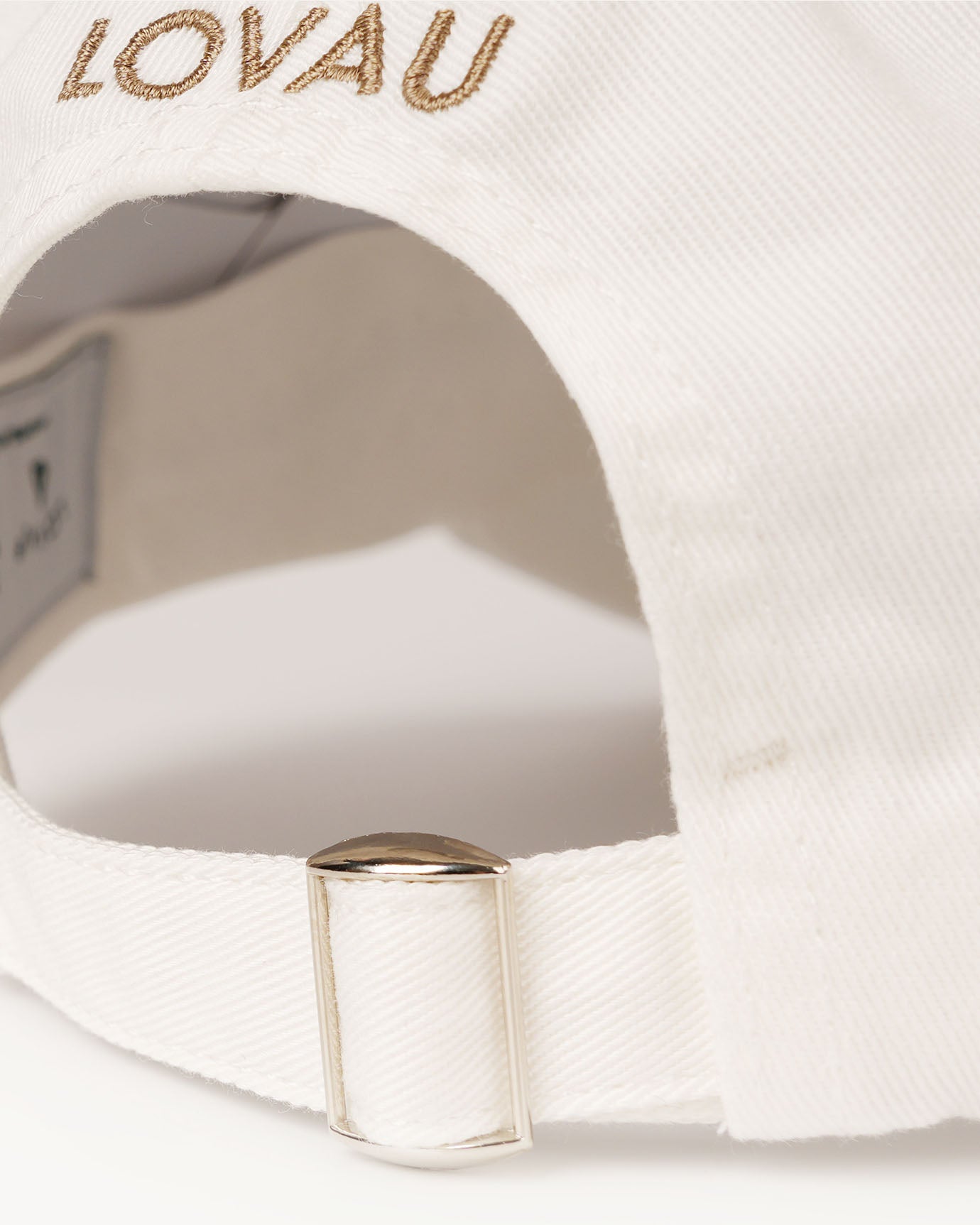 - "LOVAU" embroidery and adjustable slider buckle at the back.